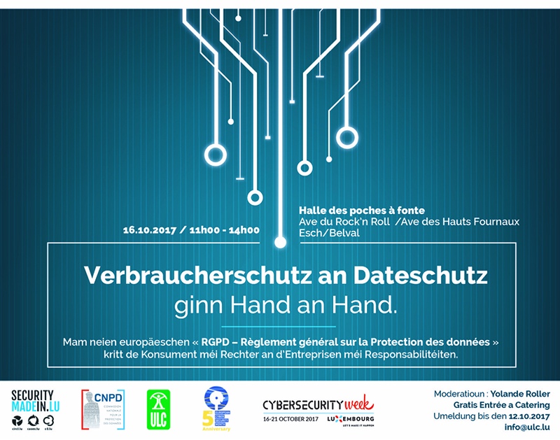 Invitatioun: Verbraucherschutz an Dateschutz ginn Hand an Hand
