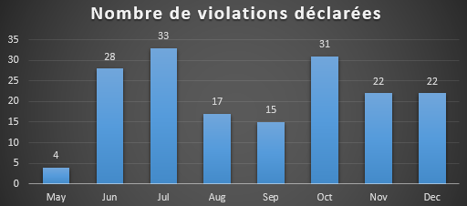 Nombre de violations de données déclarées (25 mai 2018 - 31 décembre 2018): 172