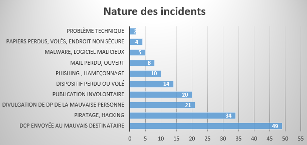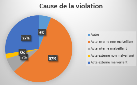 La principale cause de violation de données à caractère personnel reste l’erreur humaine (acte interne non malveillant).