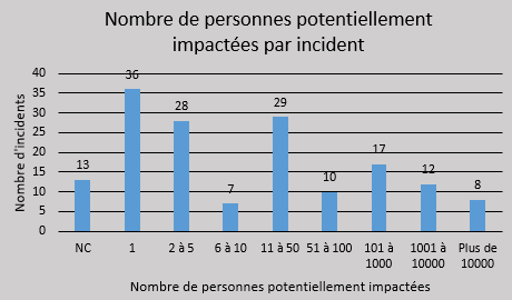 (NC = nombre de personnes impactées par la violation non connu – cela peut être le cas lors d’une exfiltration de données à partir d’un système dont la journalisation des accès aux données à caractère personnel est mal adaptée ou inexistante)