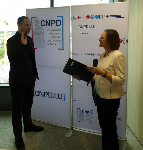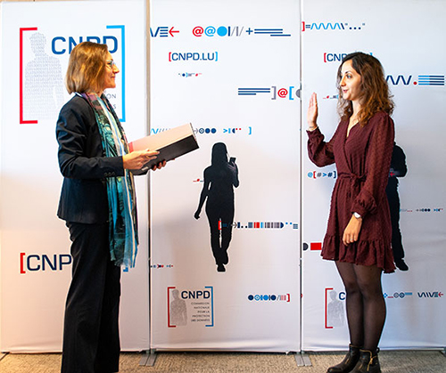 En 2021, Madame Tine A. Larsen, Présidente de la CNPD, a procédé à l’assermentation de 5 nouveaux agents en tant que fonctionnaire: